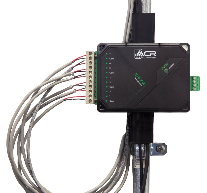 1 Compatible with any NTC thermistor temperature probe, provided it comes with a resistance vs. temperature table or equivalent calibration data. Users can enter three resistance–temperature points into ACR’s TrendReader® TRX Pro software, which will automatically generate the appropriate Steinhart–Hart equation for use with that specific sensor.